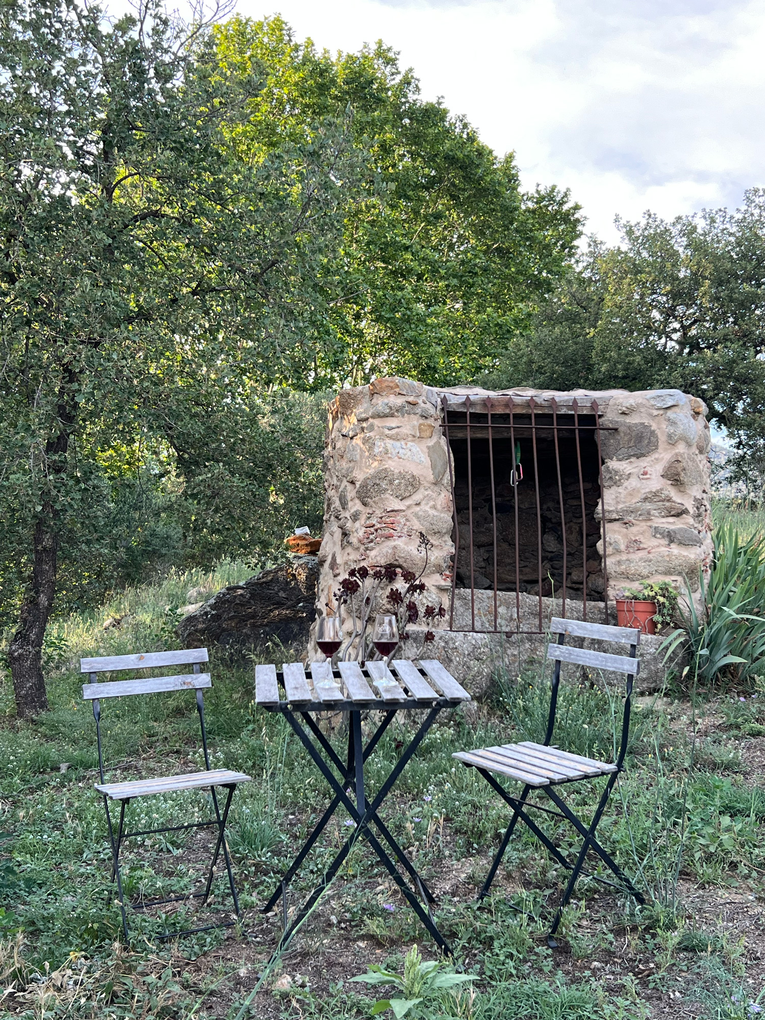 - taula pícnic a baix d’un gran roure i al costat de casa
